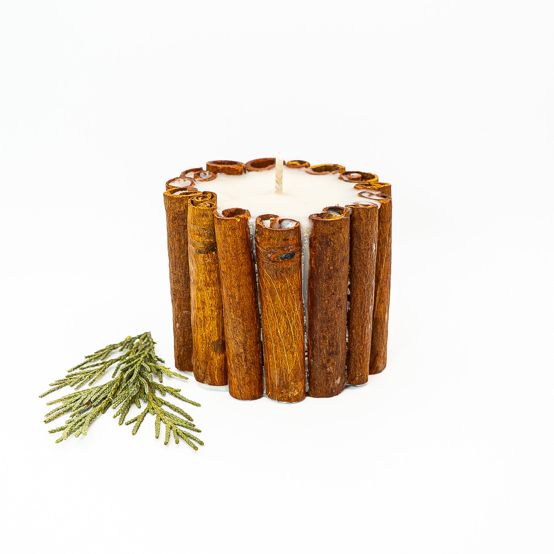 Bring the warmth of the season into your home with this charming rustic candle, featuring a handcrafted rustic design made from real cinnamon sticks arranged around the outside. This cozy, nature-inspired piece instantly enhances any space with its warm, handcrafted character. Made with premium soy wax, the candle burns through its smooth inner core while the decorative cinnamon exterior stays beautifully intact. As the flame glows, the cinnamon gently warms, releasing a soft, comforting spice aroma. Compact, earthy, and full of seasonal charm, this single-wick candle is perfect for winter decor, rustic table settings, or gifting to anyone who loves handmade, nature-inspired pieces.