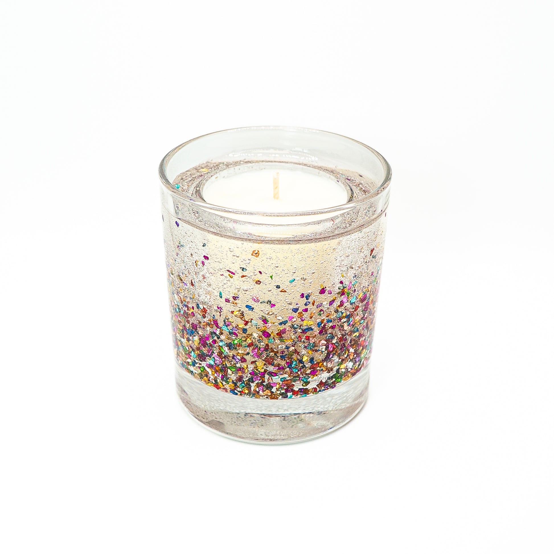 Handmade Sparkle Glow Candle – Multicolour Glitter Design
