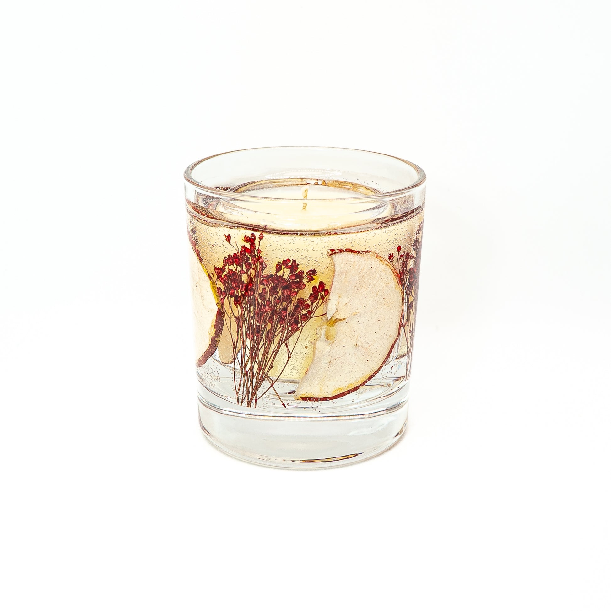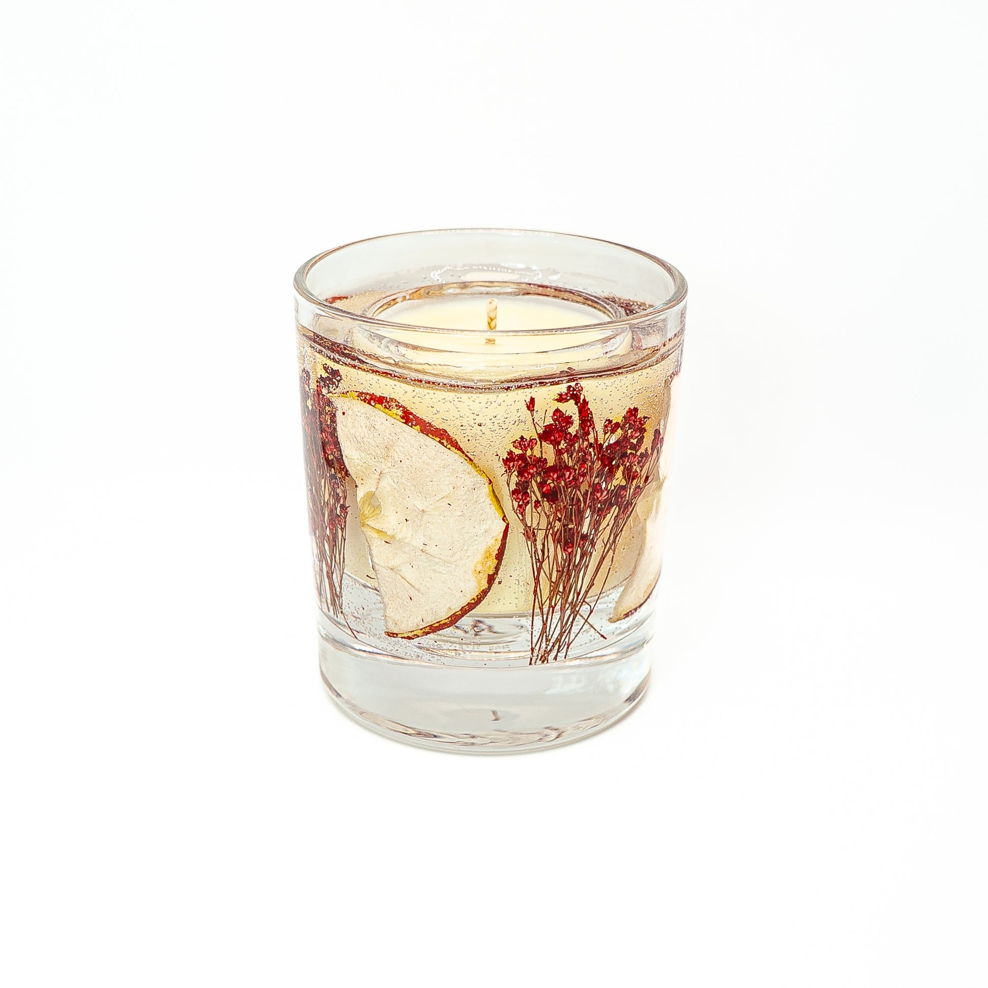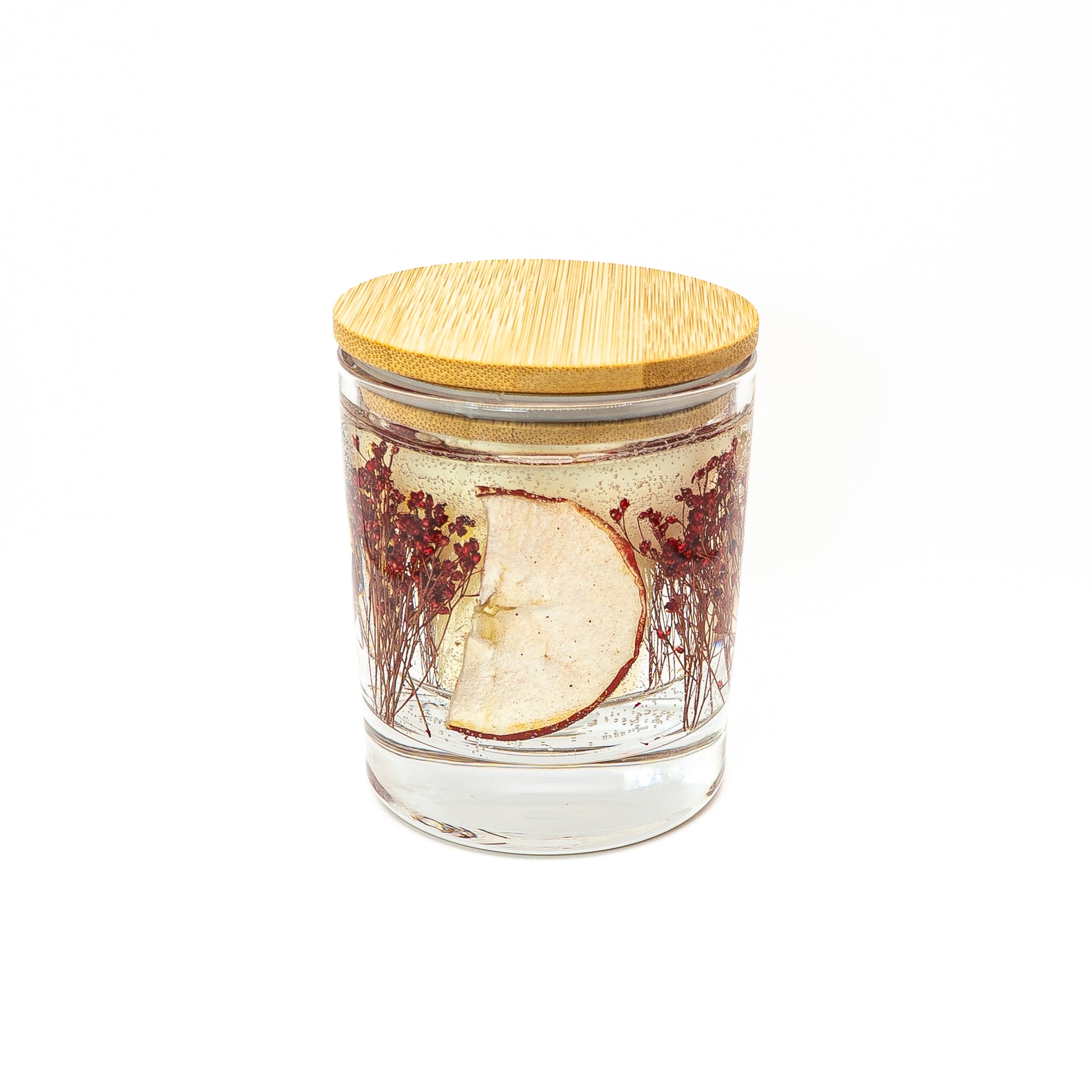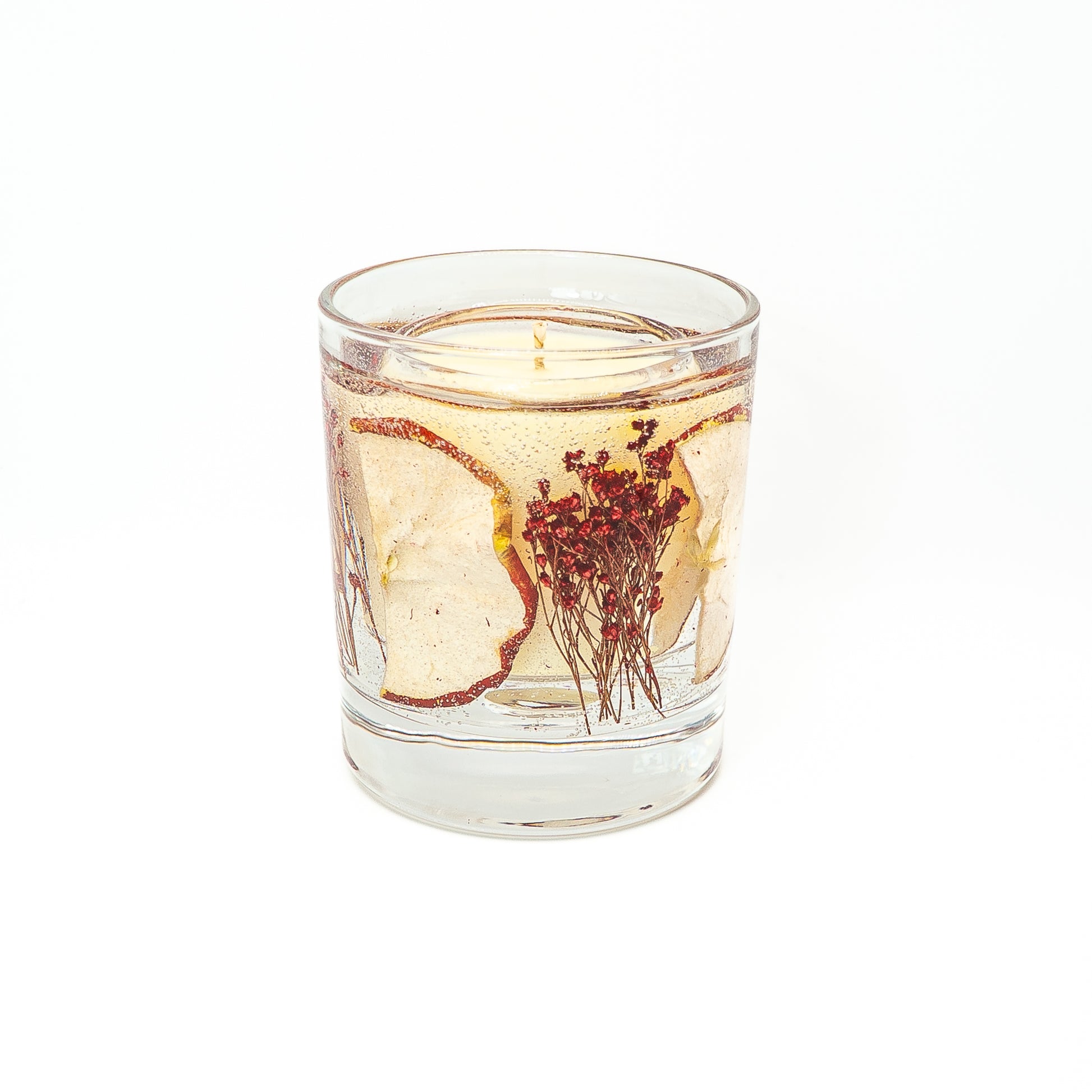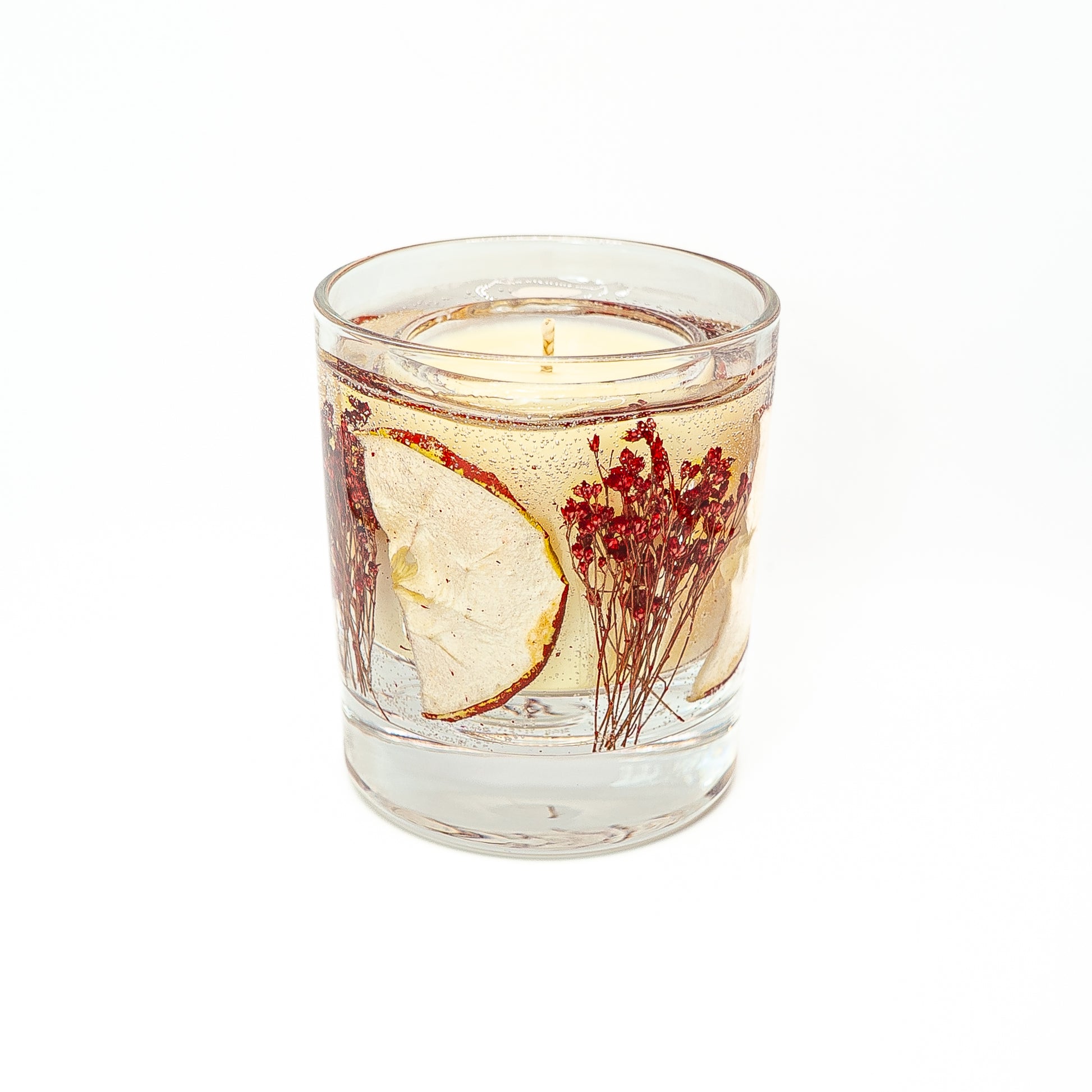 Create a cozy, nature-inspired atmosphere in your home with this stunning botanical gel candle. Handcrafted with care, each candle features real dried apple slices and delicate red flowers suspended in clear gel wax, creating a timeless and elegant design. The inner soy wax candle provides a clean, long-lasting burn, while the transparent glass jar allows the botanical elements to shine beautifully when lit.