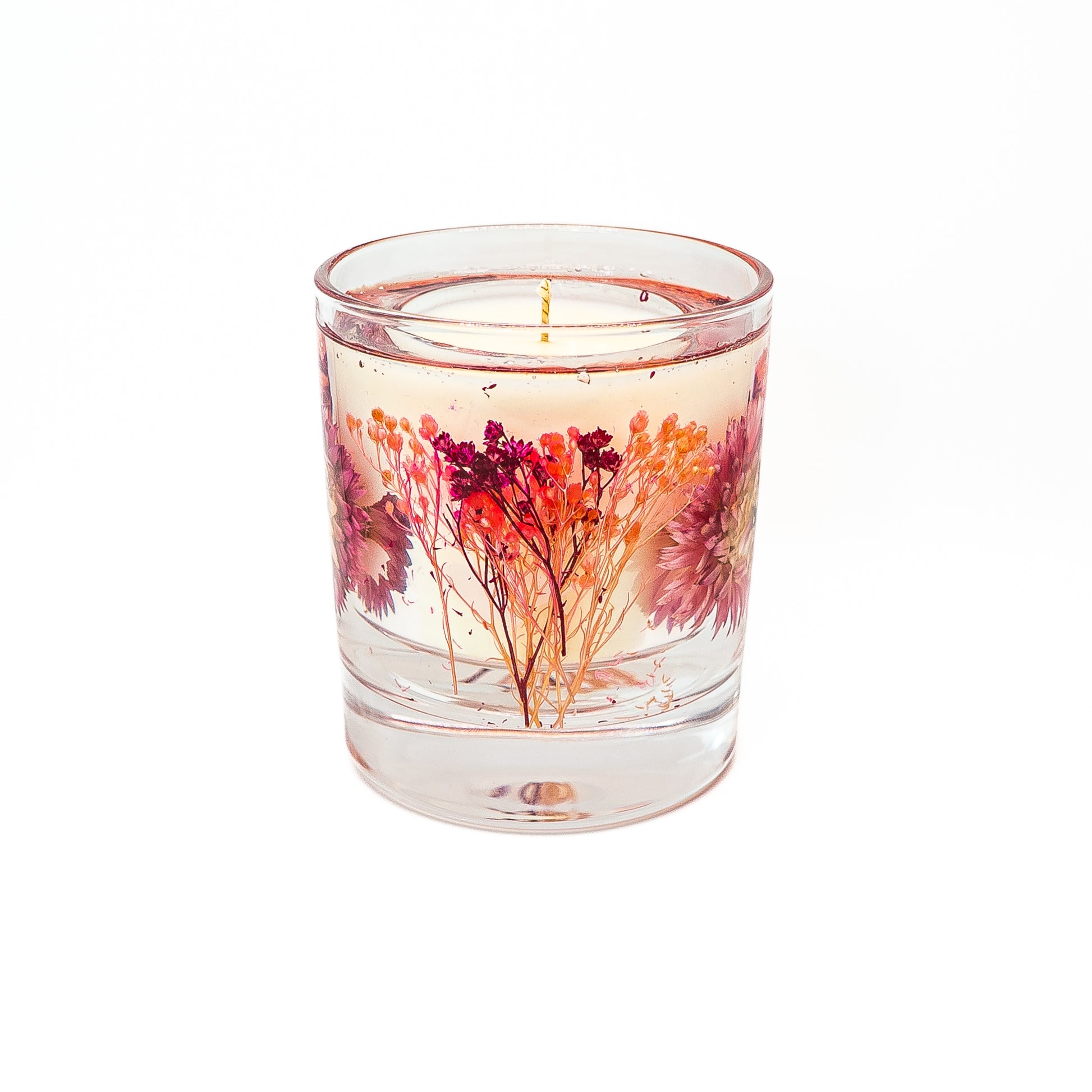 Perfect as a gift, a serene home addition, or a botanical centrepiece, this candle blends natural beauty with calming ambiance, creating a warm and inviting glow in any space.